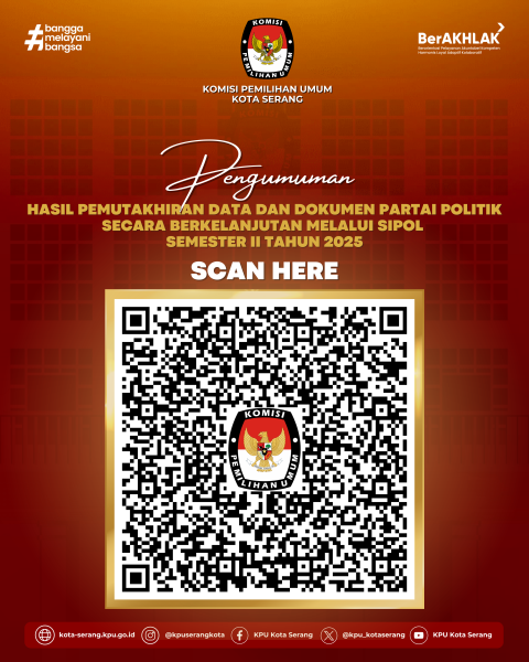 Berdasarkan hasil verifikasi terhadap data dan dokumen pemutakhiran Partai Politik, dengan ini disampaikan hasil pemutakhiran data dan dokumen Partai Politik secara berkelanjutan melalui Sipol Semester II Tahun 2025, sebagai berikut: Selengkapnya UNDUH DISINI ....