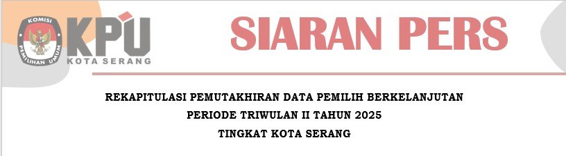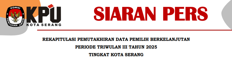 SIARAN PERS REKAPITULASI DATA PEMILIH BERKELAJUTAN TRIWULAN III TAHUN 2025 KPU KOTA SERANG Jumat, 03 Oktober 2025 18:04 20 #TemanPemilih Berikut kami sampaikan Siaran Pers Rekapitulasi Pemutakhiran Data Pemilih Berkelanjutan Periode Triwulan III Tahun 2025. Selengkapnya baca disini : SIARANPERS Baca Selengkapnya