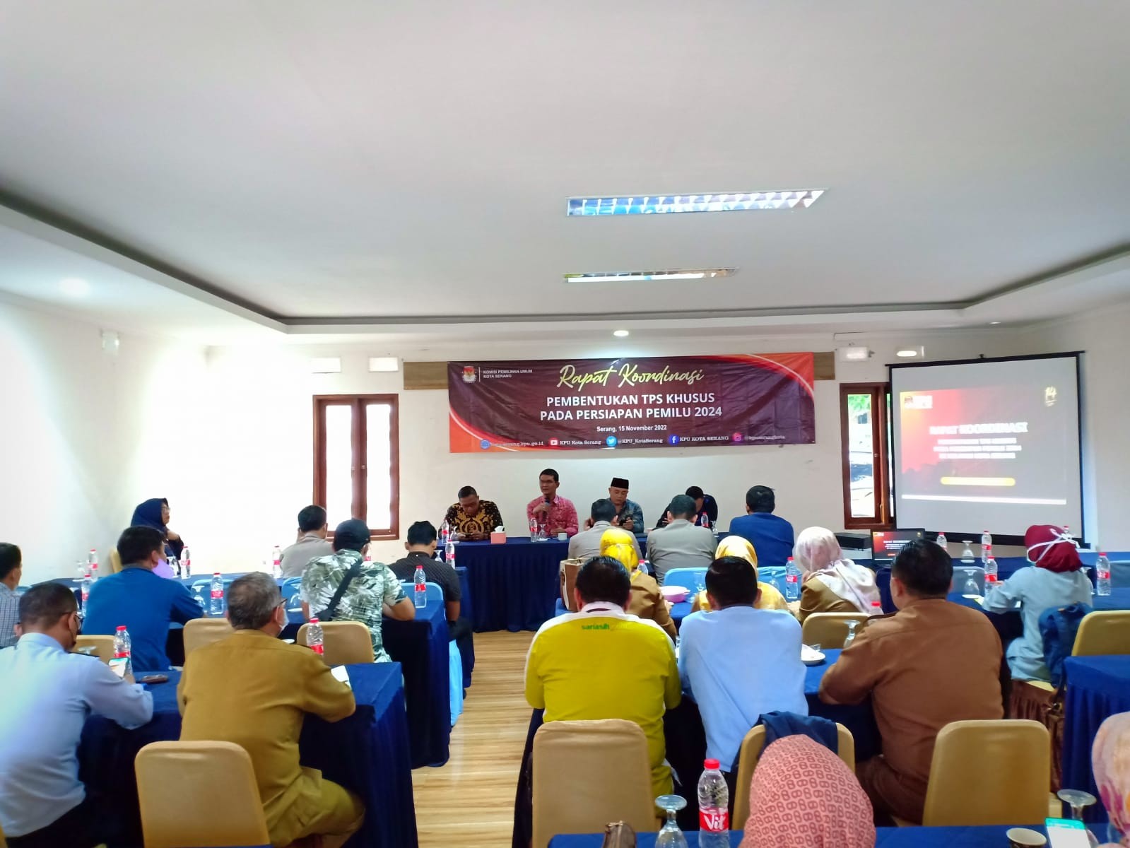KPU Kota Serang melakukan rapat koordinasi untuk memetakan lokasi khusus yang kemungkinan dapat didirikan Tempat Pemungutan Suara (TPS) pada Pemilu 2024 mendatang.