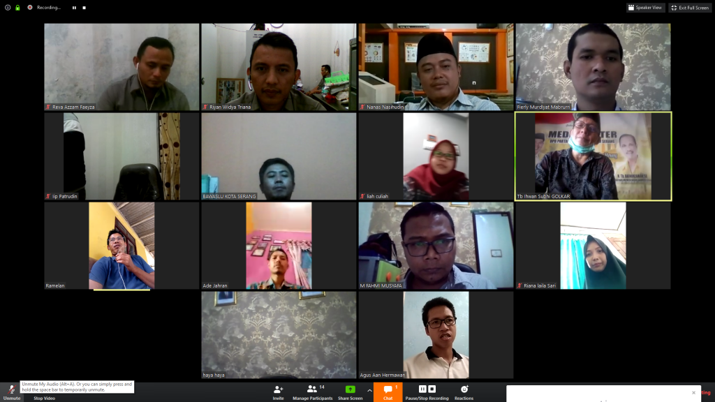 Komisi Pemilihan Umum Kota Serang melaksanakan Rapat Pleno Pemutakhiran Daftar Pemilih Berkelanjutan melalui Video Confrence Aplikasi Zoom, Rabu 1 April 2020. Pleno Pemutakhiran Pemilih Berkelanjutan Triwulan I Tahun 2020 di Aplikasi Zoom pada pukul 15:00 Wib dihadiri oleh Komisioner KPU Kota Serang, Bawaslu Kota Serang, Komisioner KPU Provinsi Banten , Sekretaris KPU Kota Serang, Kasubag Program dan Data KPU Provinsi Banten, Kasubag Program dan Data beserta operator KPU Kota Serang , serta LO Partai Politik. Dalam kesempatan tersebut Ketua KPU Kota Serang membuka acara Pleno Pemutakhiran berkelanjutan. Nanas Nasihudin Ketua Divisi Data dan Informasi menyampaikan bahwa Pemutakhiran Daftar Pemilih Berkelanjutan ini Potensi Pemilih baru, Data Kematian yang bersumber dari Dinas Kependudukan dan Catatan Sipil Kota Serang, bahwa saat ini juga kami membuka laporan tanggapan masyarakat bagi yang belum terdaftar sebagai pemilih, pemilih meninggal dunia, pindah status menajdi TNI/Polri dan lain-lain. Masyarkat bisa mengisi tanggapan melalui Google Form atau datang ke Kantor KPU Kota Serang mengisi Formulir tanggapan masyarakat. Berikut kami sampaikan Berita Acara Pemutakhiran Pemilih Berkelanjutan Triwulan I Tahun 2020 , bisa Download disini.