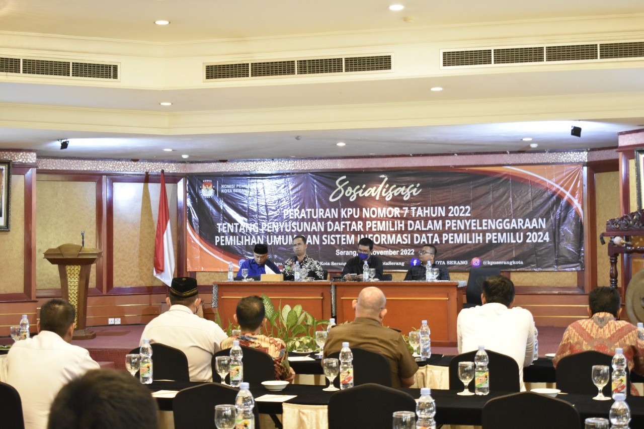 Komisi Pemilihan Umum (KPU) Kota Serang mengadakan sosialisasi peraturan KPU No. 7 Tahun 2022 tentang penyusunan daftar pemilih dalam penyelenggaraan pemilihan umum dan sistem informasi data pemilih pemilu 2024 bertempat di Hotel Le Dian Kota Serang, Rabu (16/11). Sosialisasi ini dihadiri oleh ASDA I Kota Serang Subagyo, Komisioner KPU Provinsi Banten Agus Sutisna, para jajaran anggota KPU Kota Serang, perwakilan Bawaslu Kota Serang, pimpinan partai politik calon peserta pemilu, perwakilan forkopimda Kota Serang serta instansi terkait lainnya. Disampaikan oleh Komisioner KPU Provinsi Banten Agus Sutisna bahwa PKPU No. 7 tahun 2022 merupakan PKPU baru pengganti 2 PKPU sebelumnya, yang dimana terdapat beberapa perubahan terkait dengan pemuktahiran data pemilih. Tahapan pemuktahiran data pemilih dan penyusunan daftar pemilih untuk pemilu tahun 2024 sedang berlangsung mulai sejak tanggal 14 Oktober 2022. Lebih lanjut, Agus Sutisna mengatakan bahwa dalam PKPU terbaru ini terdapat penggabungan antara penyusunan data pemilih untuk keperluan didalam negeri dan diluar negeri. "Pertama misalnya di pemilu 2019 yang lalu, PKPU mengenai pemuktahiran data pemilih dan penyusunan data pemilih terbagi menjadi dua yaitu penyusunan data pemilih untuk keperluan pemilih didalam negeri dan PKPU selanjutnya khusus diluar negeri, PKPU yang sekarang itu menggabungkan dua PKPU ini" Ucapnya. Kemudian terkait dengan perlindungan data pribadi, Agus Sutisna menyampaikan dalam PKPU terbaru dengan tidak gampang memberikan data secara terbuka kepada siapapun kecuali yang memang diperkenankan oleh undang-undang. "Kemudian pengaturan yang lain yang juga mengalami sedikit perubahan dibandingkan PKPU sebelumnya adalah bahwa di PKPU ini isu mengenai perlindungan data pribadi dari para warga pemilih itu diperkuat" Ucapnya. Selain itu juga, agar menjaga dan menjamin hak pilih warga negara, Agus Sutisna menuturkan dalam PKPU terbaru pengaturan TPS di lokasi khusus, hal ini didasarkan pada pengalaman pemilu 2019 agar perlindungan terhadap hak-hak konstitusional warga negara jauh lebih maksimal. "Selanjutnya di PKPU baru ini, terkait dengan ada pengaturan TPS di lokasi khusus, hal ini dalam PKPU yang diangkat dan dinormalkan berdasarkan sejumlah pengalaman di pemilu 2019, dimana banyak sekali orang yang kemudian sudah terdaftar didalam DPT pada TPS tertentu, tetapi pada saat pemungutan suara mereka tidak dapat memberikan suara di TPS terdaftar sehingga berpotensi kehilangan hal pilihnya" Ucapnya. Mengenai hal tersebut, ASDA I Kota Serang Subagyo yang mewakili Walikota Serang dalam acara tersebut mengapresiasi KPU yang sudah memasuki tahapan pemuktahiran data pemilih. Subagyo mengatakan hal ini perlu adanya saling sinkronisasi data antara Pemerintah Daerah dengan KPU. "Ini juga menjadi tidak hanya kewajiban KPU tetapi juga kewajiban pemerintah daerah untuk menyiapkan data, baik itu data pemilih yang saat ini mungkin sudah memiliki dokumen kependudukan KTP atau data pemilih potensial yang nanti mungkin pada saat pemilu nanti itu warga yang sudah tepat berusia 17 tahun, itu juga menjadi tugas dan tanggungjawab kita dengan KPU untuk saling mensinkronisasikan data, jangan sampai nanti ada pemilih yang memang sudah berusia 17 tahun tetapi tidak masuk kedalam DPT karena belum memiliki KTP, sehingga itu yang harus disinkronkan antara KPU dengan Pemerintah Daerah khususnya Disdukcapil" Ucapnya. Subagyo menambahkan kaitannya dengan pemuktahiran data perlu ketepatan daftar pemilih agar meminimalisir konflik atau sengketa sehingga perlu adanya keterlibatan hingga tingkat bawah yaitu RT dan RW. "Disamping itu kaitannya dengan pemuktahiran, kita juga meminimalisir terjadinya konflik atau sengketa pemilu terutama yang diawali dari ketidaktepatan daftar pemilih, misalkan ada daftar pemilih yang karena memang mungkin dia sudah meninggal dunia tetapi karena mungkin keluarganya merasa belum ada kebutuhan untuk melaporkan kepada pemerintah, itu juga yang harus kita antisipasi, kita melakukan pemuktahiran, baik itu di disdukcapil kemudian kecamatan dan kelurahan sampai ke RT/RW" Ucapnya.