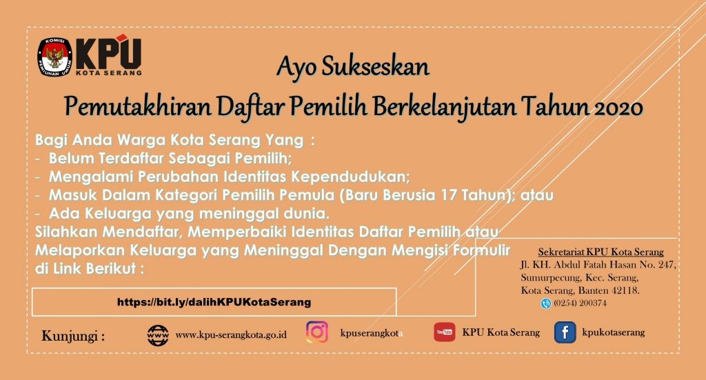 Bahwa KPU Kota Serang membuka posko pelayanan Pemutakhiran Daftar Pemilih Berkelanjutan Tahun 2020 .
