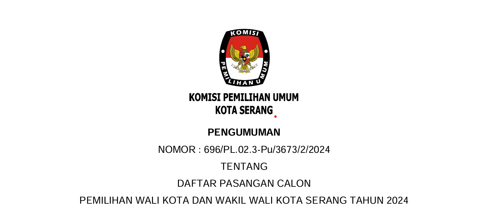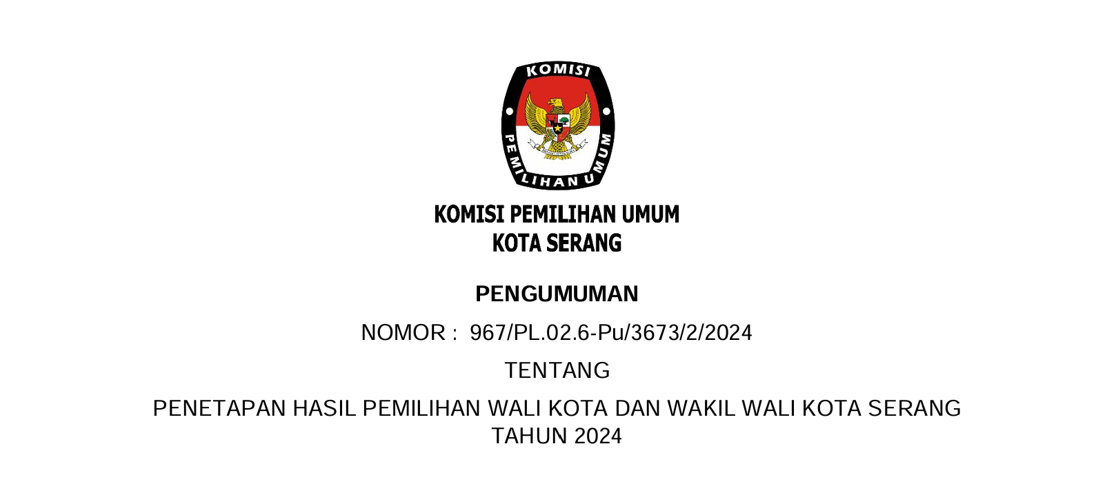 PENETAPAN HASIL PEMILIHAN WALI KOTA DAN WAKIL WALI KOTA SERANG TAHUN 2024