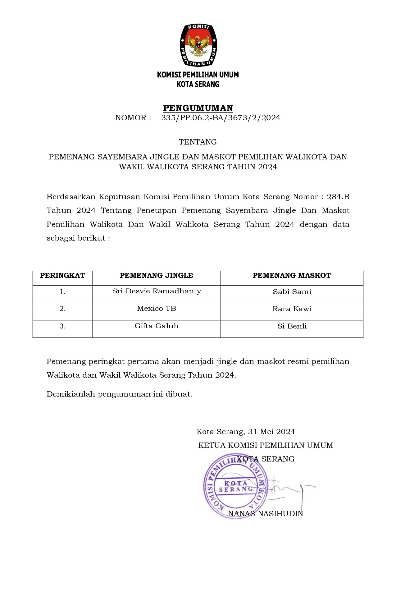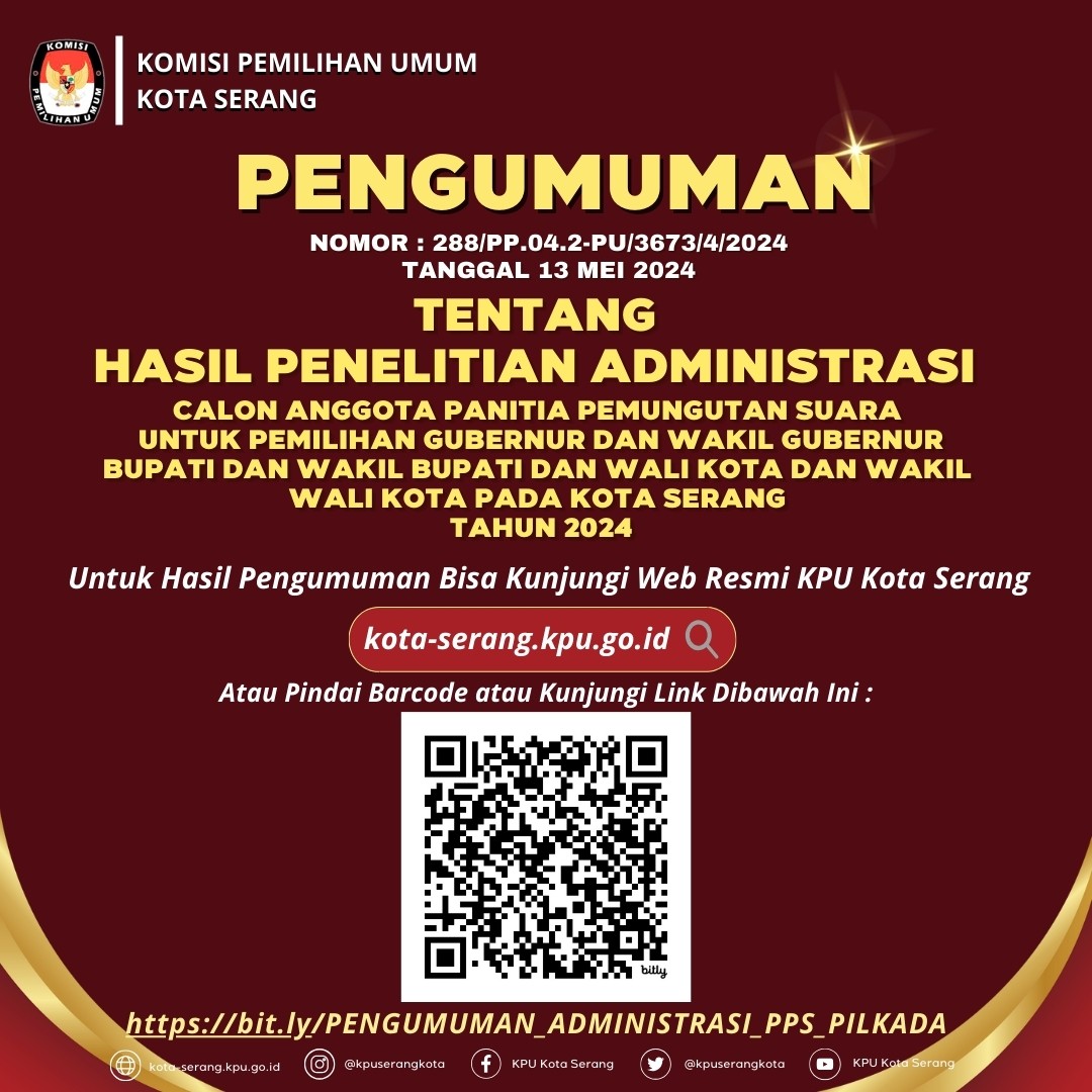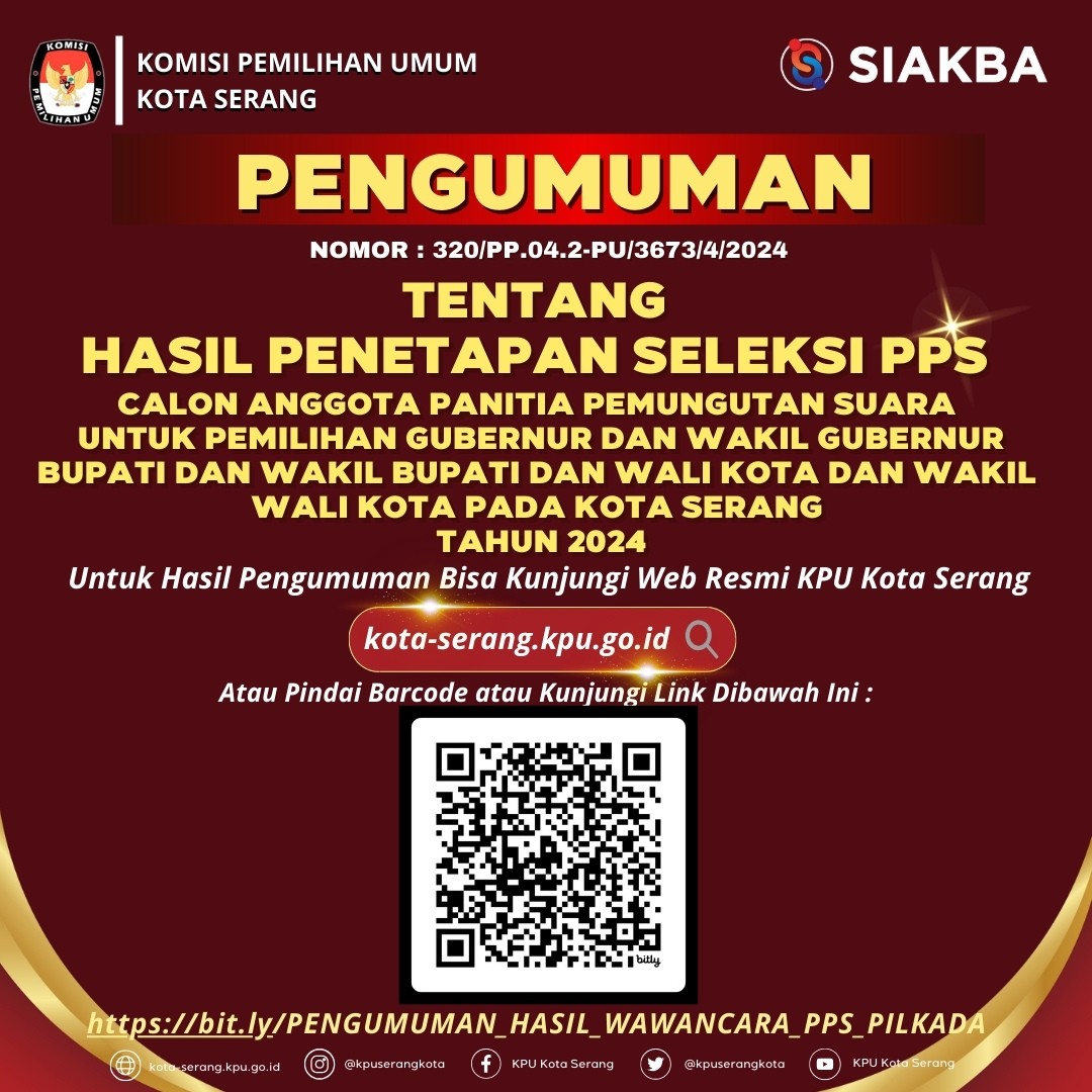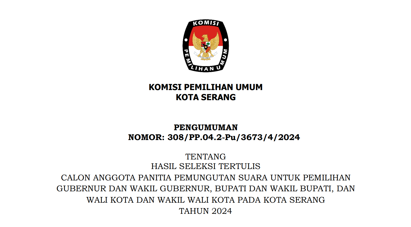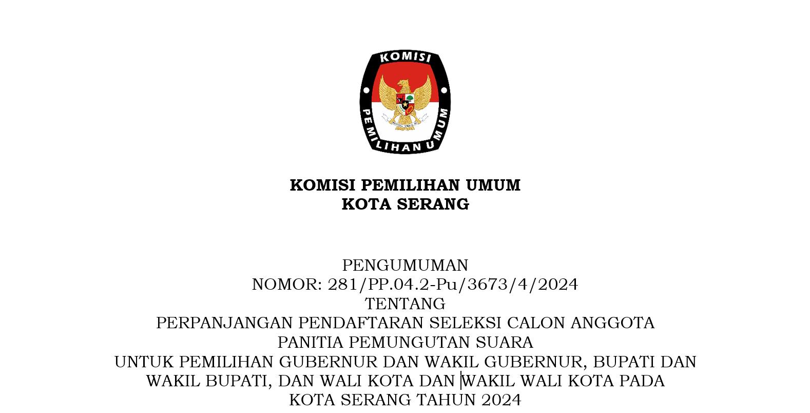 PERPANJANGAN PENDAFTARAN SELEKSI CALON ANGGOTA PANITIA PEMUNGUTAN SUARA UNTUK PEMILIHAN GUBERNUR DAN WAKIL GUBERNUR, BUPATI DAN WAKIL BUPATI, DAN WALI KOTA DAN WAKIL WALI KOTA PADA KOTA SERANG TAHUN 2024