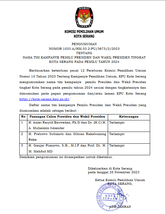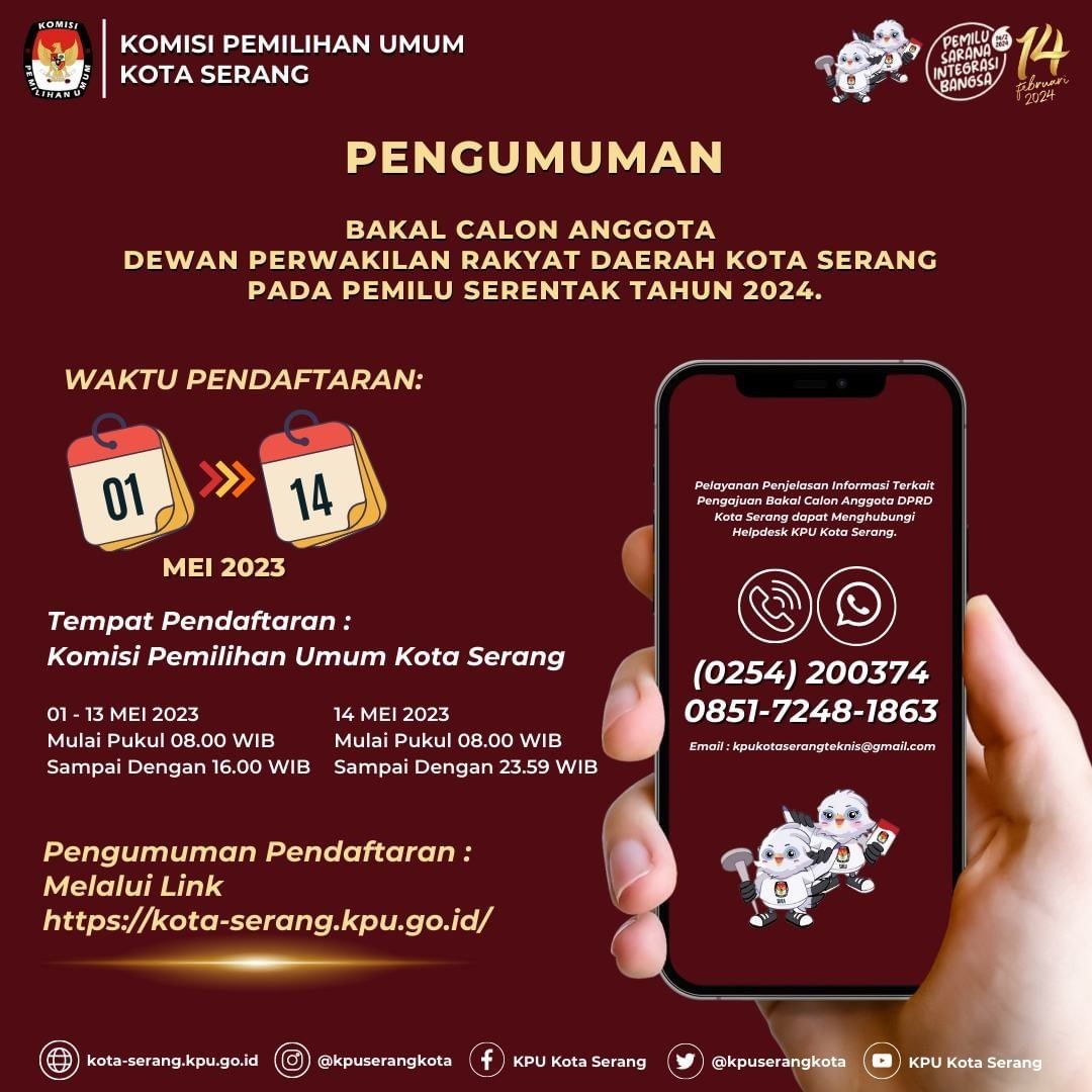 Informasi lebih lanjut dapat menghubungi helpdesk pencalonan KPU Kota Serang.