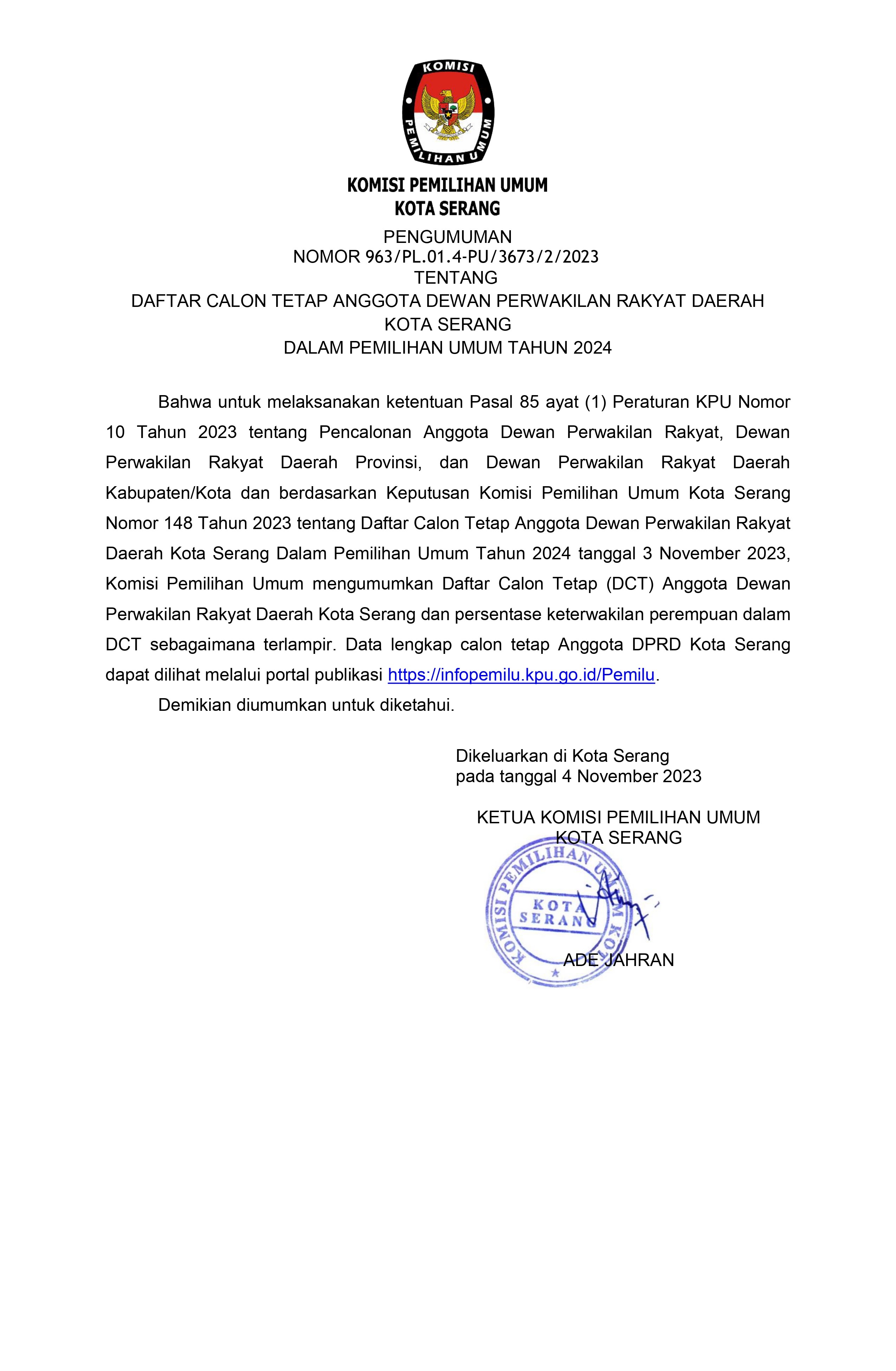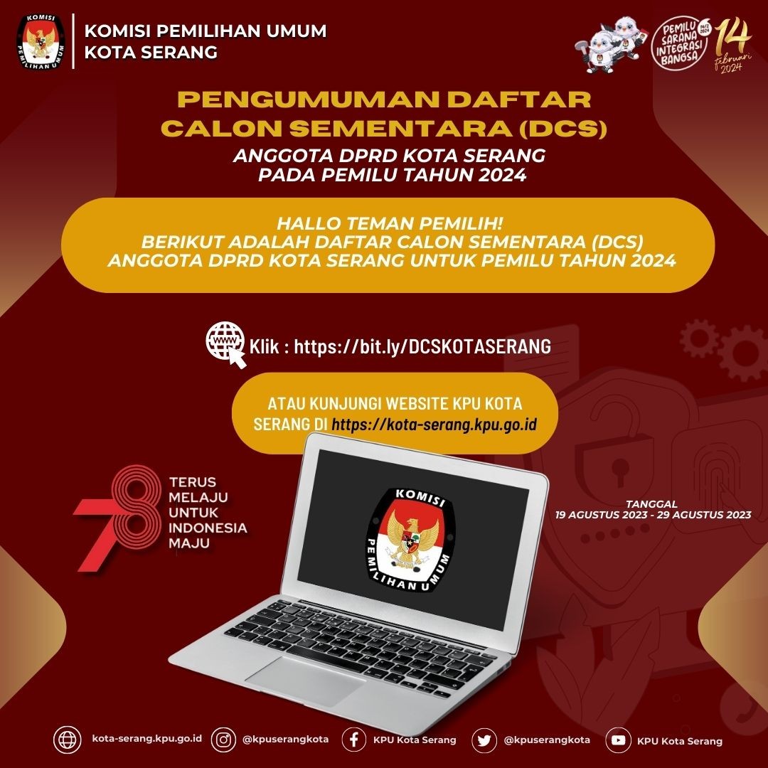Bahwa untuk melaksanakan ketentuan Pasal 70 Peraturan KPU Nomor 10 Tahun 2023 tentang Pencalonan Anggota Dewan Perwakilan Rakyat, Dewan Perwakilan Rakyat Daerah Provinsi, dan Dewan Perwakilan Rakyat Daerah Kabupaten/Kota, KPU Kota Serang mengumumkan Daftar Calon Sementara (DCS) Anggota DPRD Kota Serang dan persentase keterwakilan perempuan dalam Daftar Calon Sementara (DCS) sebagaimana terlampir.