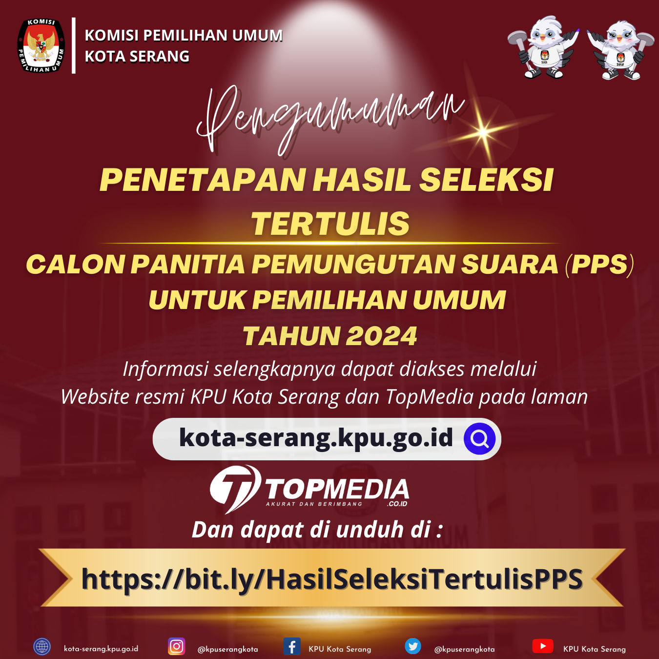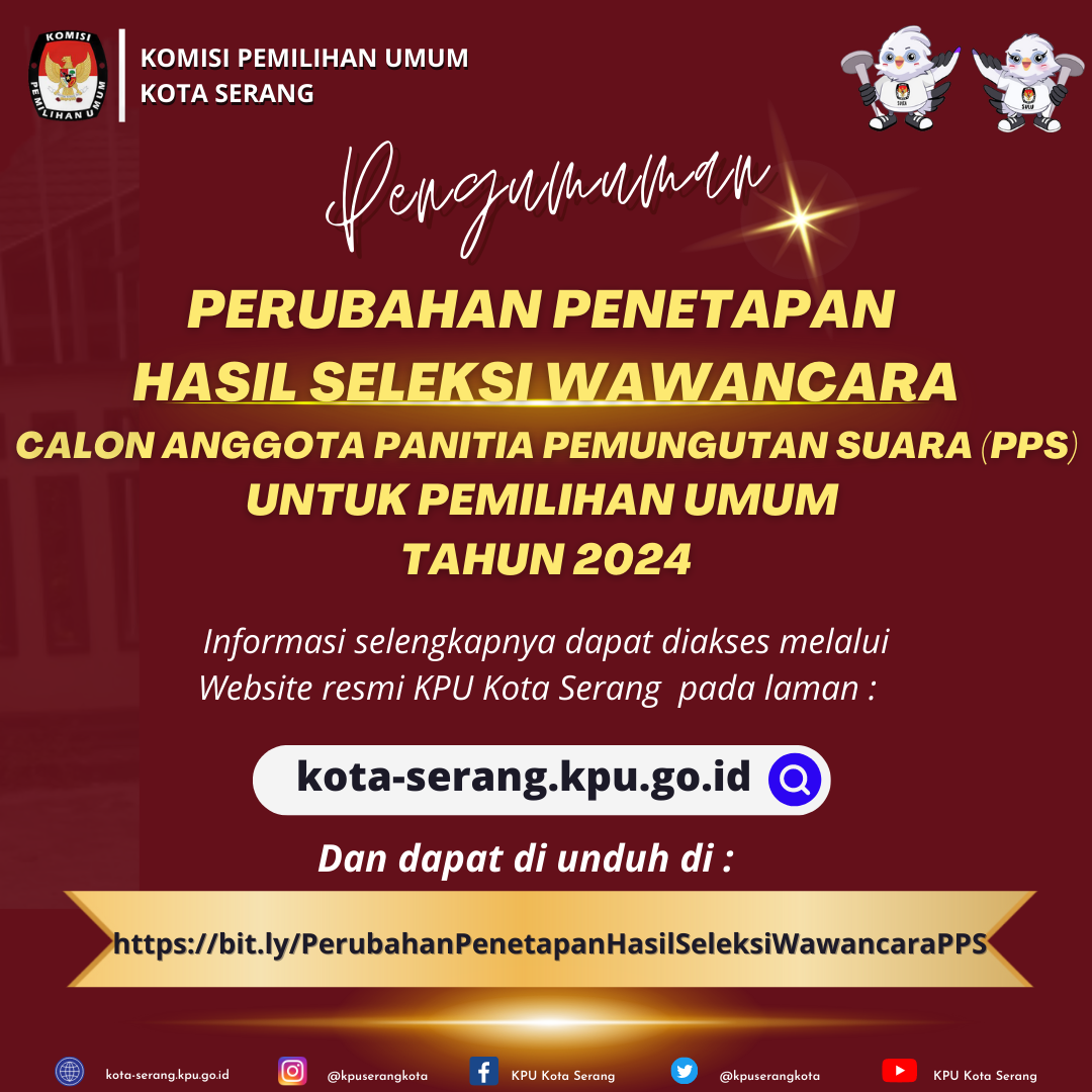 Download Pengumuman Penetapan Hasil seleksi Tertulis calon Anggota Panitia Pemungutan Suara (PPS) untuk Pemilu Tahun 2024 KPU Kota SErang
